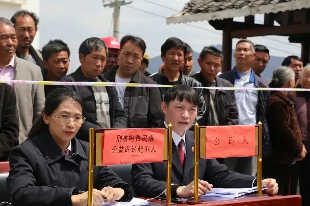在案发地,织金县人民法院巡回审判庭在案发地开庭审理一起失火案,织金县人民检察院派员出庭支持公诉,通过现场开庭,用真实案例提示广大群众要牢固树立森林防火意识。