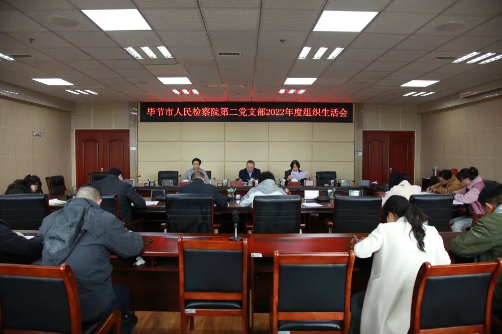 2023年3月31日上午,毕节市检察院第二党支部召开2022年度组织生活会,该院党组书记、检察长张宇以普通党员身份参加会议并作点评讲话。 会上,支部书记罗沙白代表支委会通报了2022年度支部工作情况,代表支部班子作对照检查发言,并带头进行自我剖析。支部全体党员逐一进行检视剖析发言,围绕理论学习、担当作为、党员意识、纪律作风等方面的存在的问题,认真开展批评与自我批评,自我批评有深度,互相批评有辣味,起到了进一步加强思想政治教育、促进工作的目的。 张宇对第二党支部过去一年来的工作给予充分肯定,他表示,组织生活会是党的组织生活的一项重要内容,是增强党组织活力和促进党的肌体健康的重要形式,也是党员干部加强党性修养的重要途径,此次组织生活会全体党员准备认真、充分,通过检视问题找差距、剖析根源找原因,紧紧把握红脸出汗的原则,帮助同志、促进工作,达到了“团结-批评-团结”的目的。