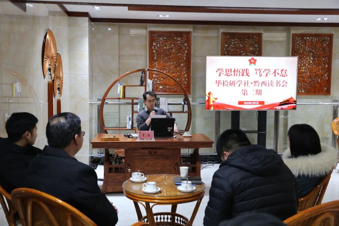 2月9日,孟春时节,寒风抹不去春意盎然,对于喜欢读书的人来说,在怡人的春光里,流淌的音乐与浓浓的书香更令人沉醉。当天,一场以“思学践行,笃学不怠”为主题的毕检研学社?黔西读书会第二期活动在黔西市人民检察院成功举办,本次读书会由党组成员郑晓楼主持,来自各内设机构的负责人以及读书爱好者们齐聚一堂,共品书香。